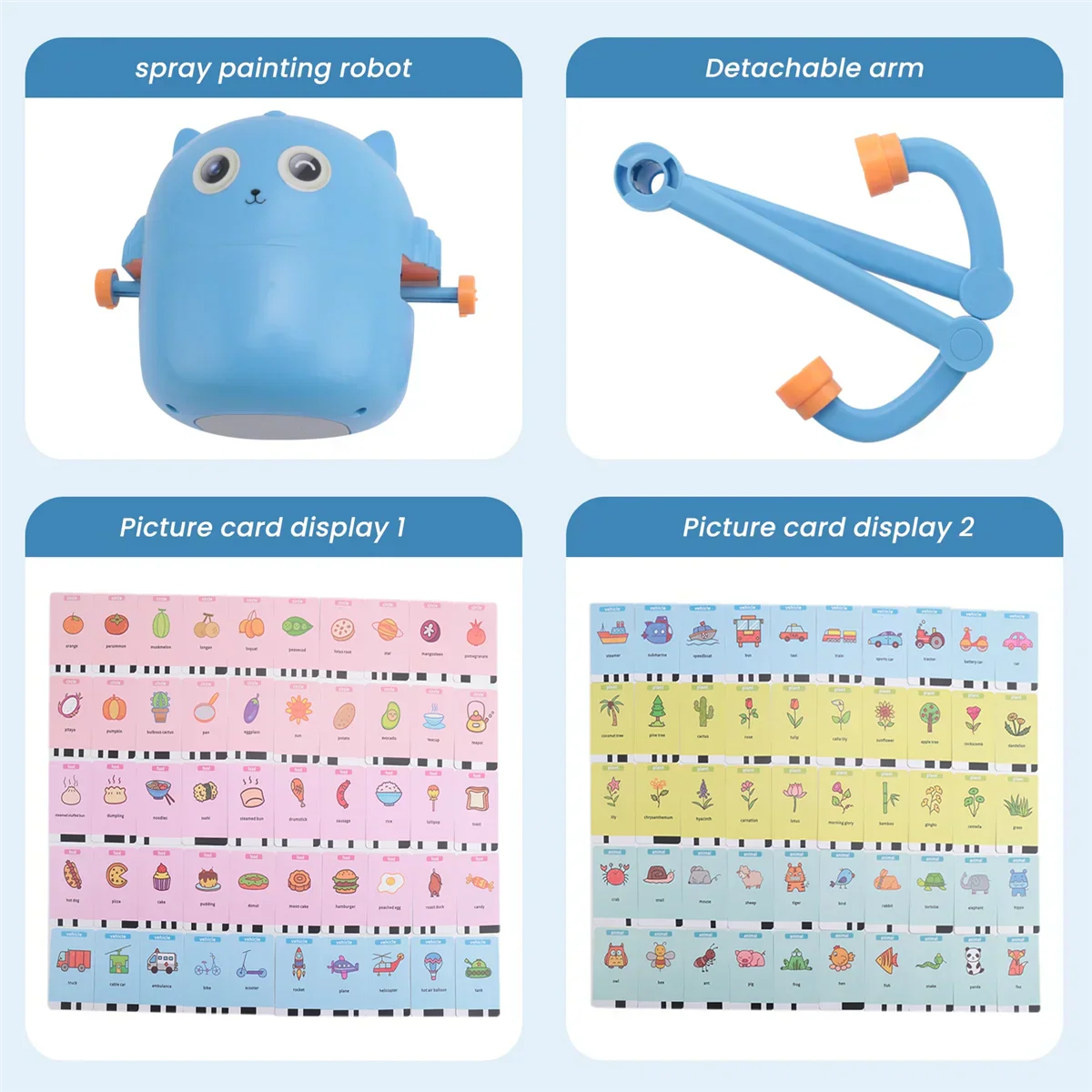 B17CC New Children'S Interactive Education Painting Robot -Montessori Learning Toys, with 100 Words Cards, Voice Interaction